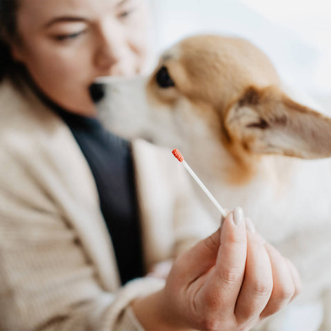 Use the lancet provided to snap your dog’s lip to obtain a small droplet of blood. The lancet is single use, and can be fired only once and you will not see the blade.